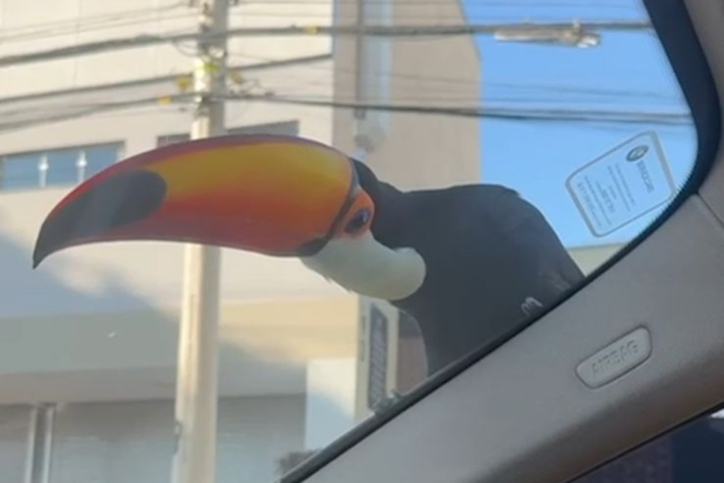 Tucano espia carro e surpreende moradora do Centro de Piracicaba